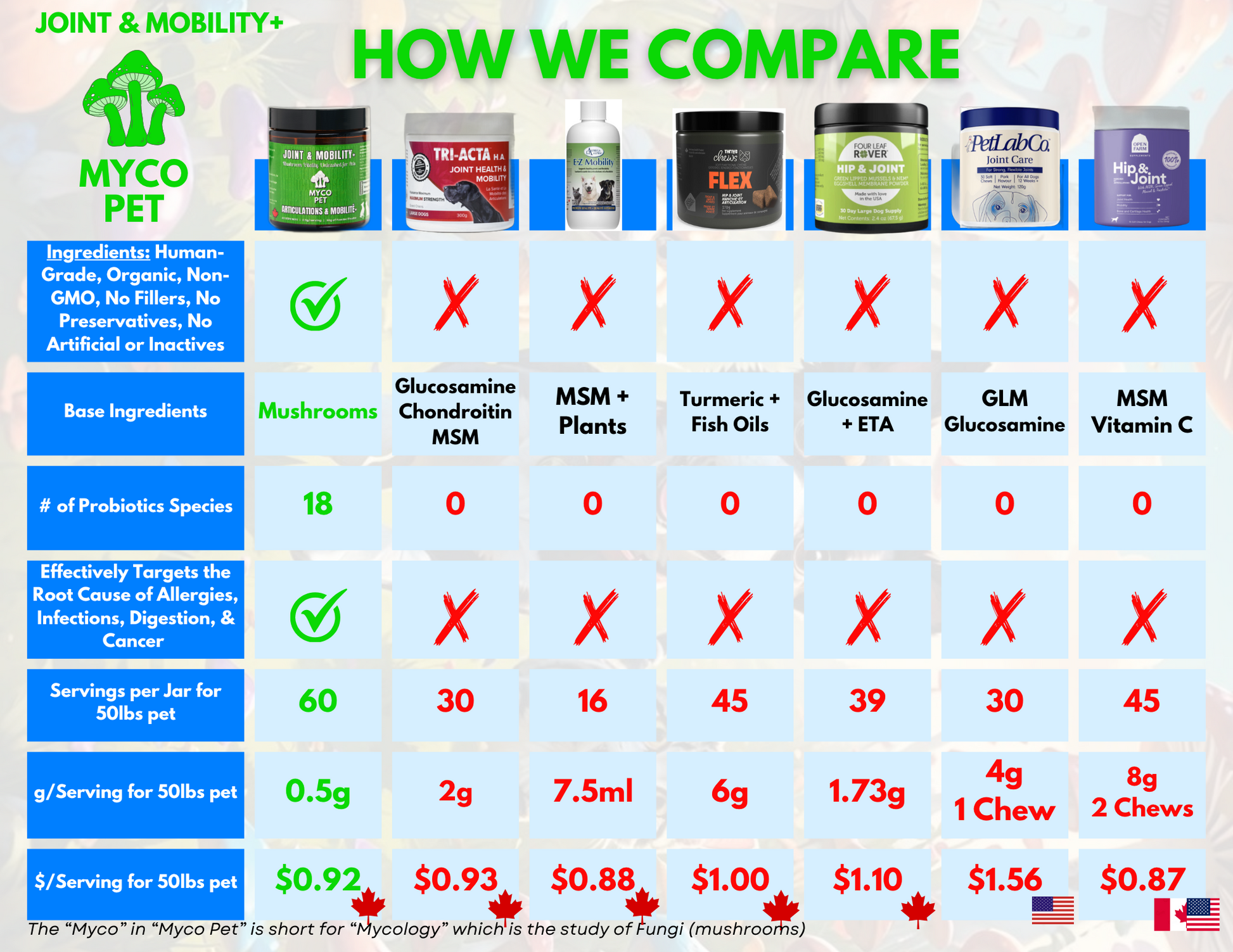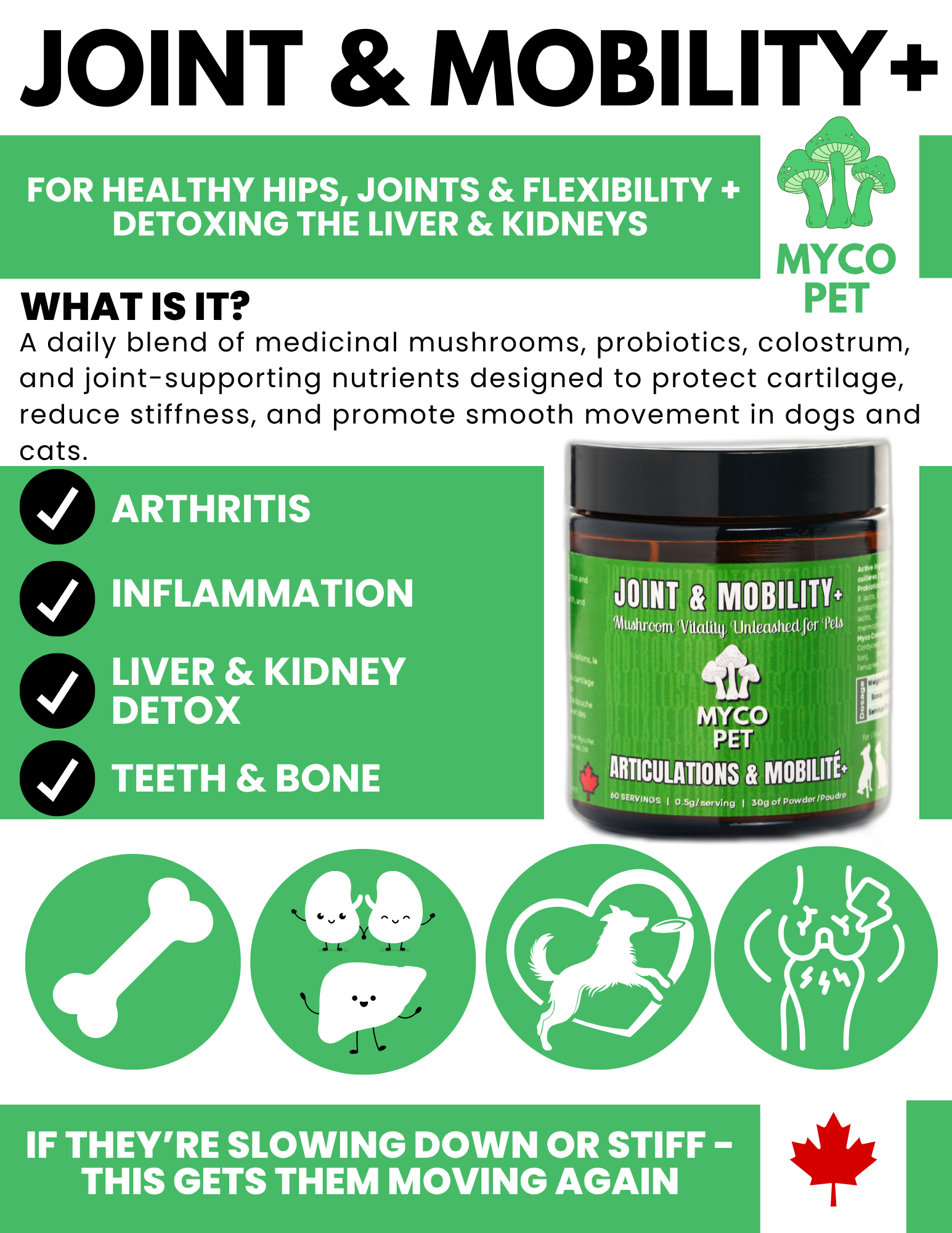 Myco Canine JOINTS & RECOVERY está especialmente diseñado: