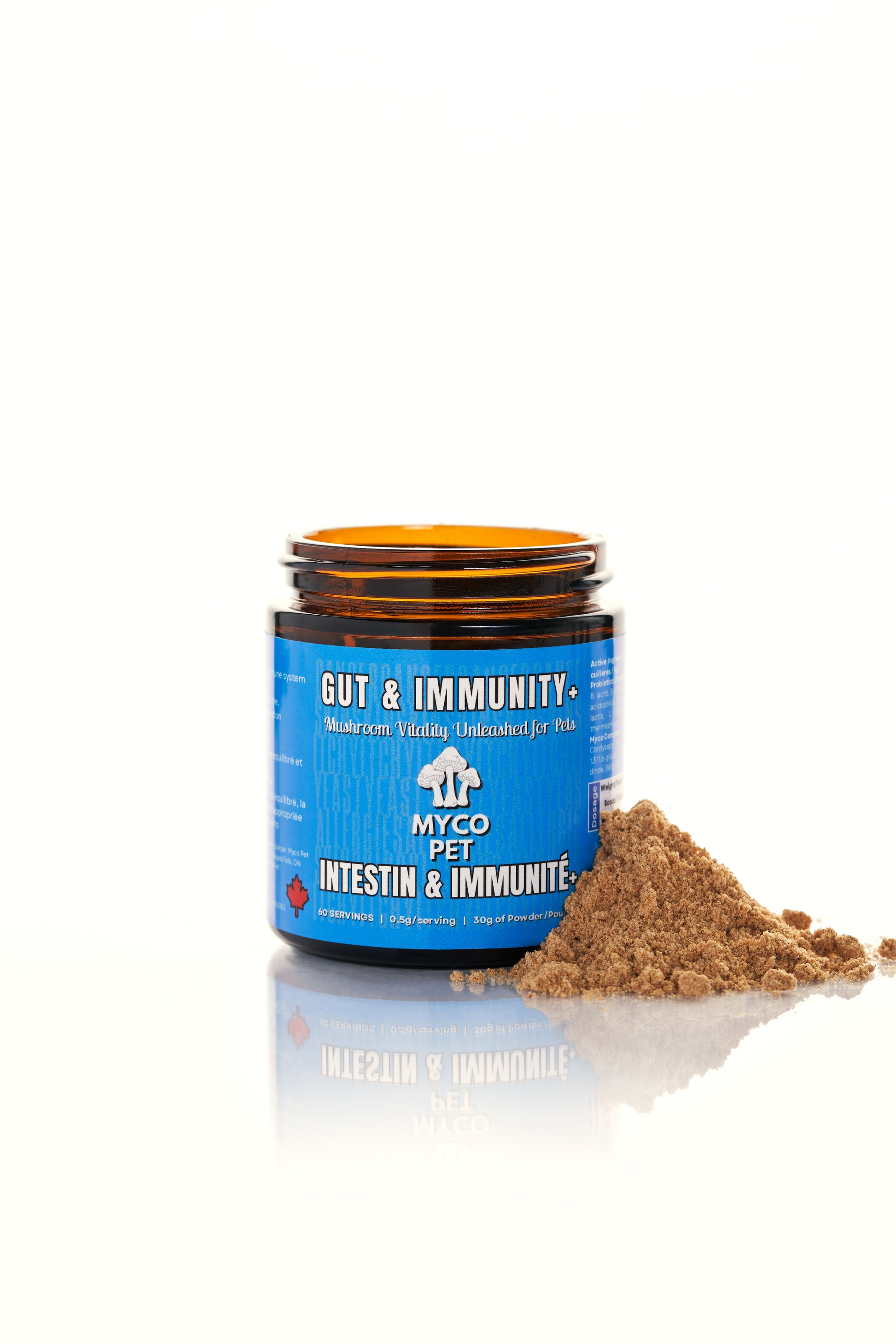 Use the Gut & Immunity supplement to target the root cause of yeast (itchy paws, ear infections, red goopy eyes, belly rashes, excessive itching, chewing and licking, head shaking, discoloured fur and skin). The root cause is the GUT! The more severe your pet is, the more you give.