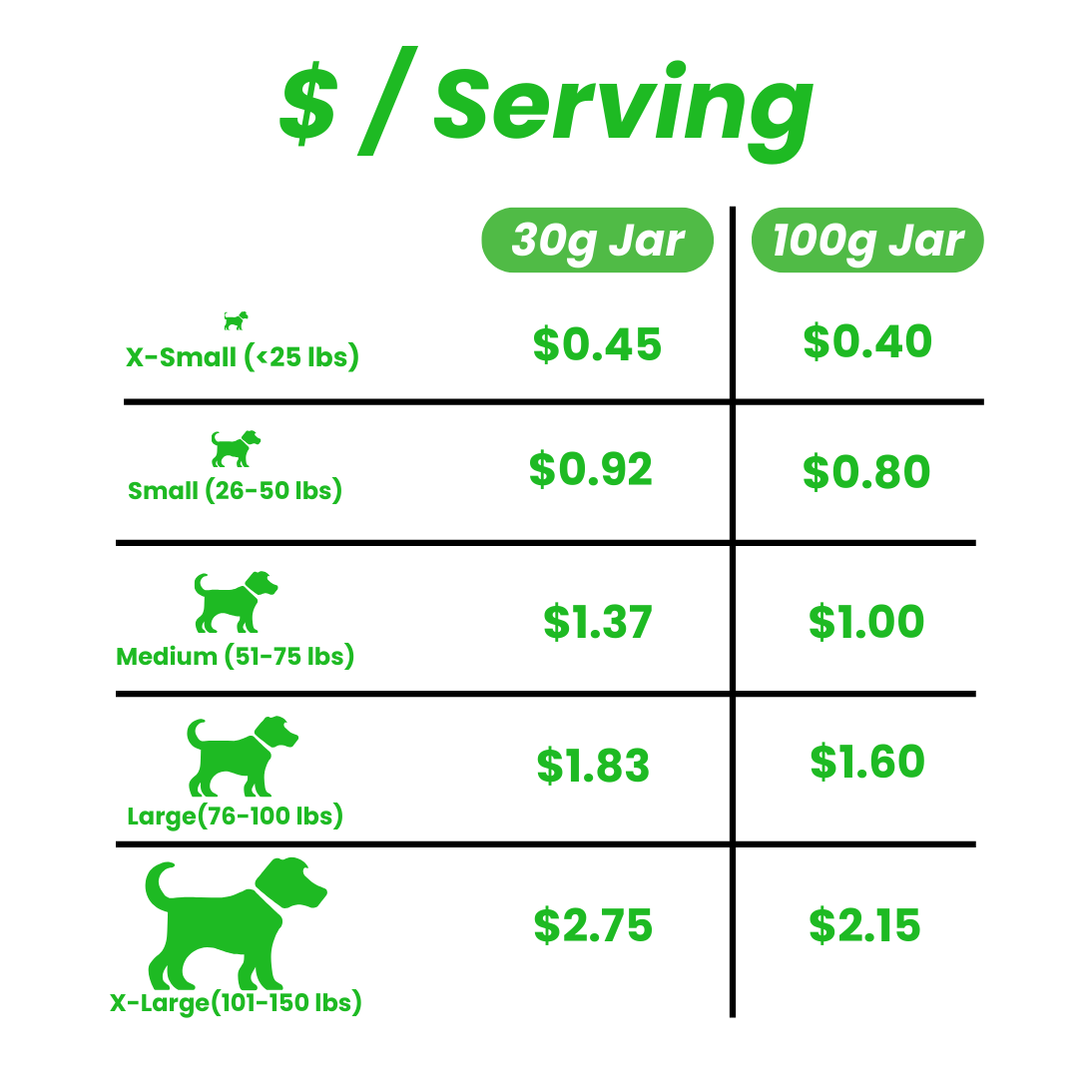Mélanger avec de la nourriture. 1 mesure = ½ gramme