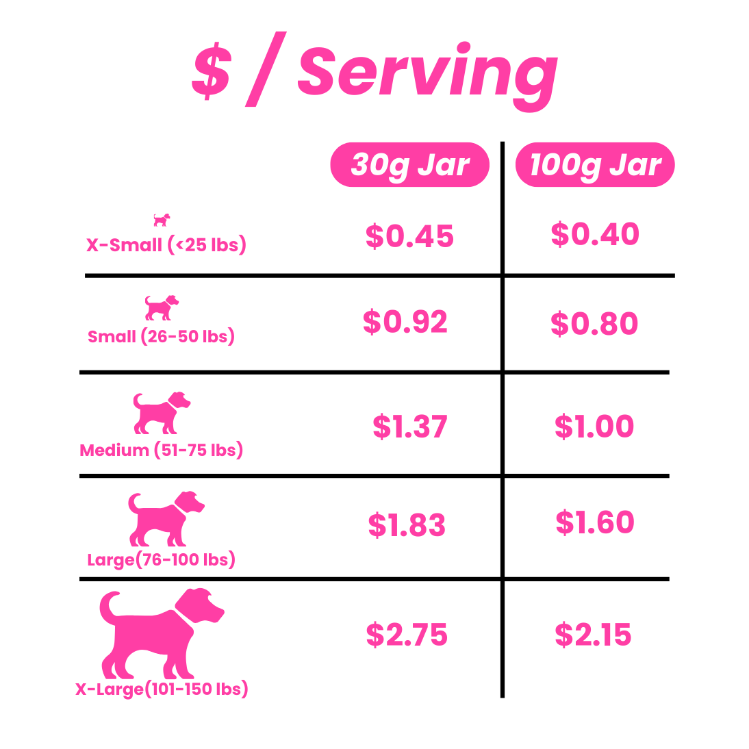 Mélanger avec de la nourriture. 1 mesure = ½ gramme