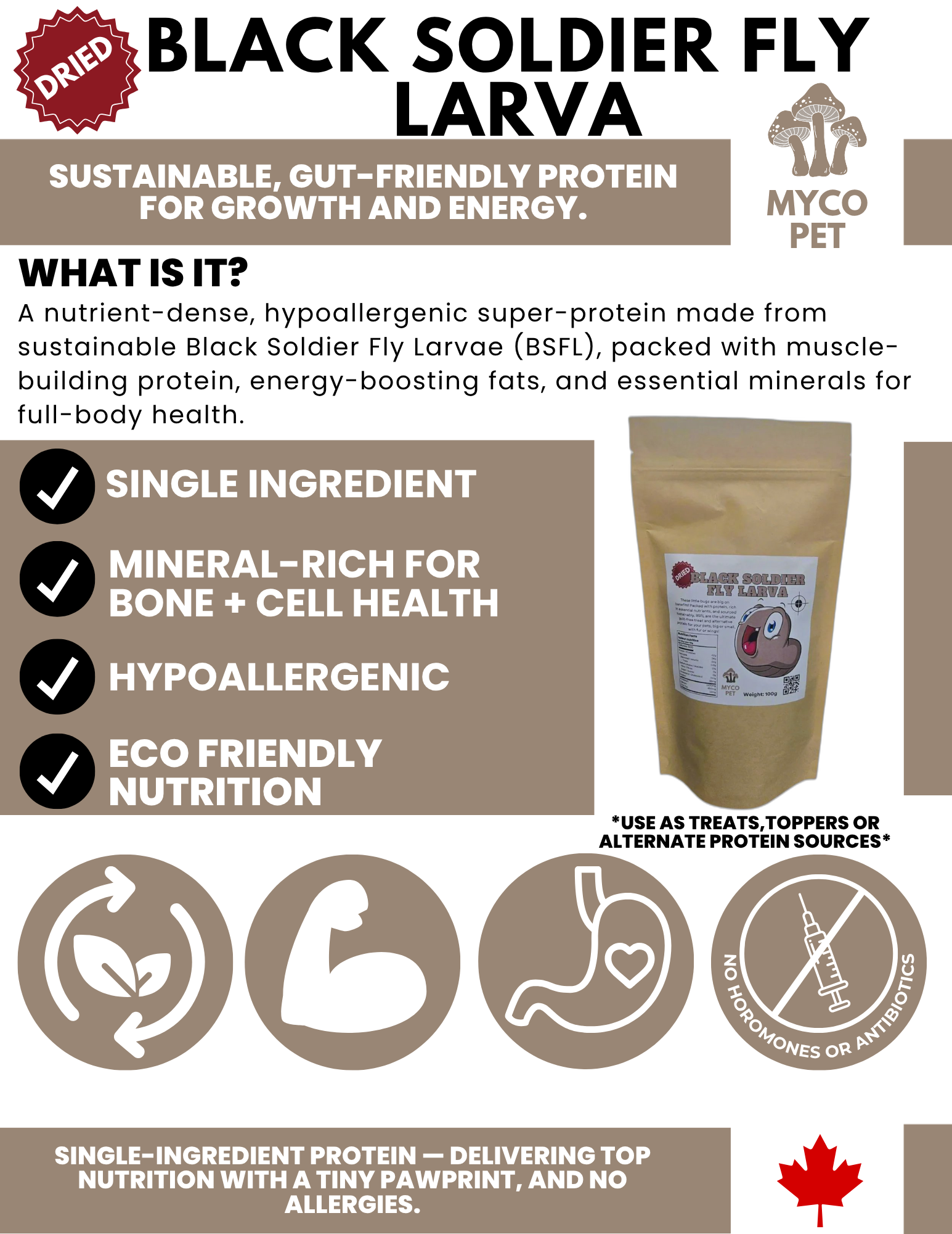 The production of BSFL is an environmentally friendly process that aligns with carbon-conscious practices, offering a sustainable alternative to conventional pet foods. By choosing BSFL, you support eco-friendly food systems while providing your animals with high-quality nutrition to enhance their health and well-being.