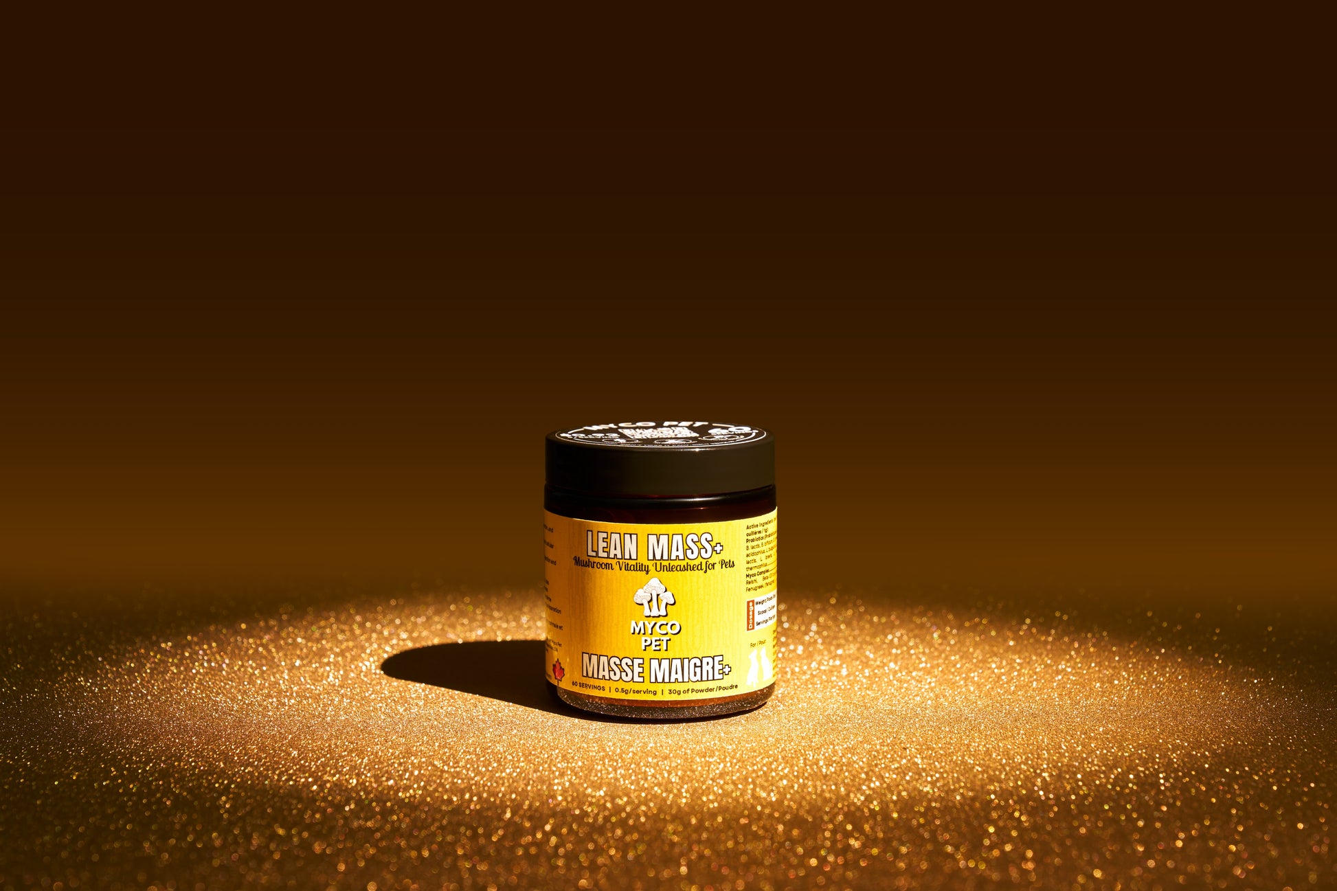 Lean Mass+ provides functional mushrooms and plant-based nutrients that help support lean muscle growth, strength, and recovery — especially in active, aging, or underweight pets.