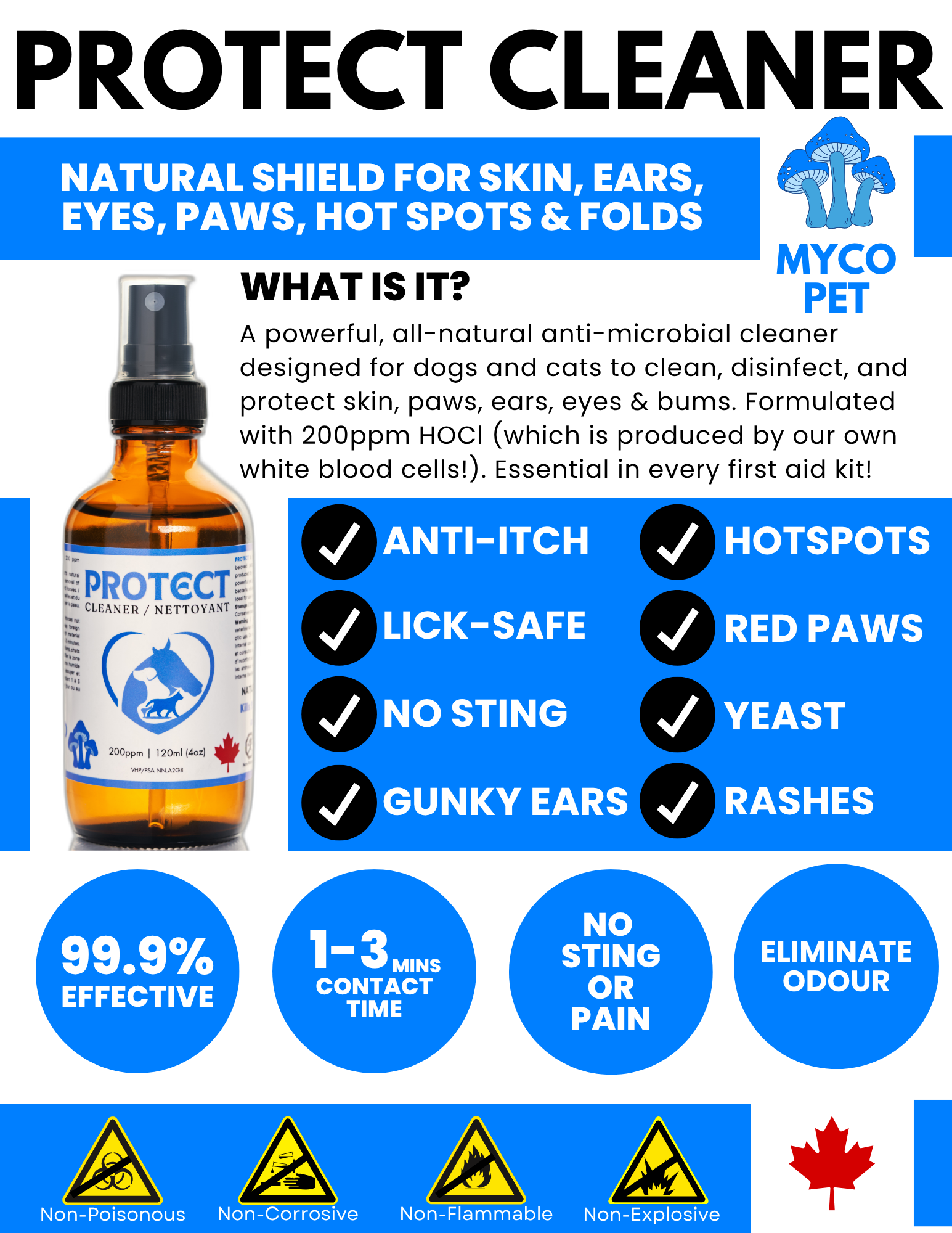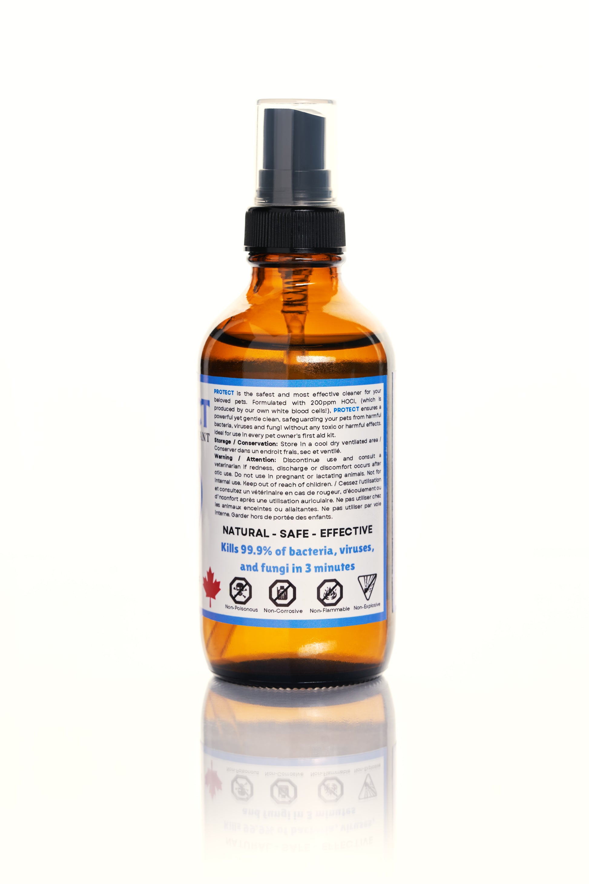 PROTECT is the safest and most effective disinfectant for your beloved pets. Formulated with 200ppm of hypochlorous acid, (which is produced by our own white blood cells you know!), PROTECT ensures a powerful yet gentle clean, safeguarding your pets from harmful bacteria, viruses and fungi without any toxic or harmful effects. Ideal for use in every pet owner's first aid kit, PROTECT offers peace of mind with its non-toxic, non-flammable, non-corrosive, and non-harmful nature. Keep your furry friends safe and healthy with PROTECT - because their well-being deserves the best! Oh, and did we mention it’s safe for humans too?!